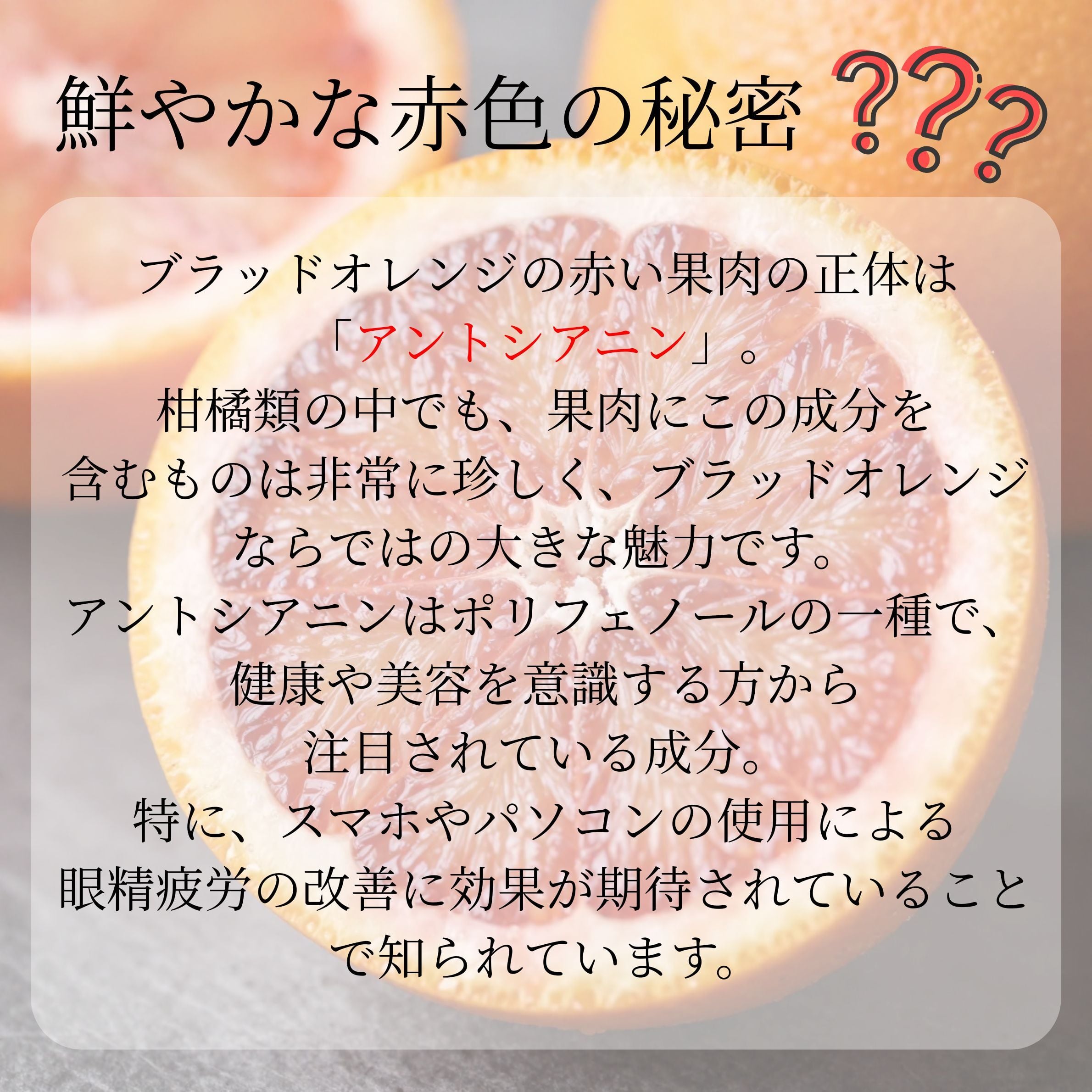 他のオレンジと一線を画す鮮やかな赤色の果肉が特徴のブラッドオレンジ。